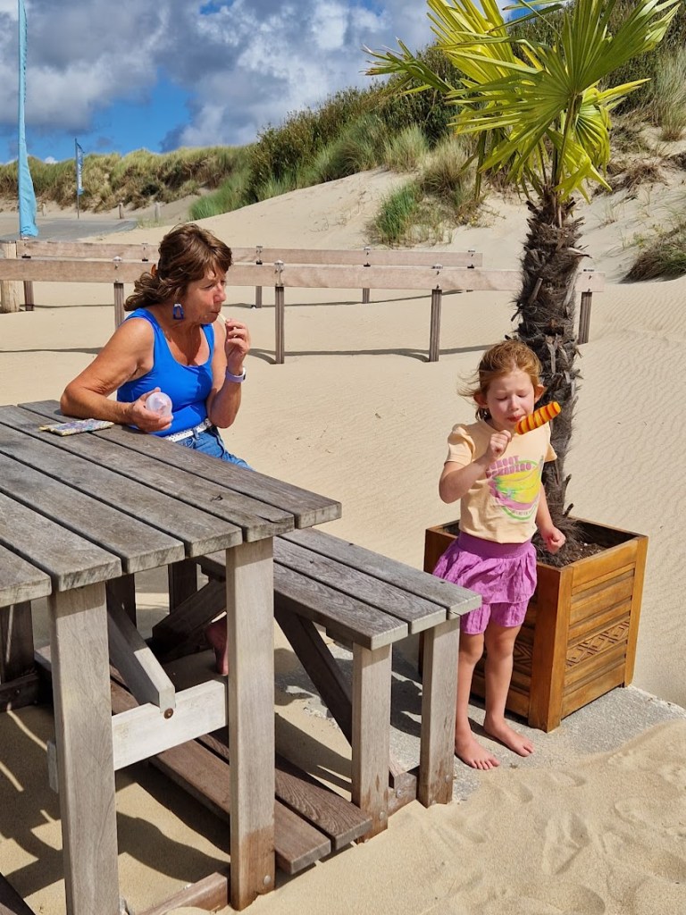 Trap aflopen en we zijn aan het strand…wat een feest…