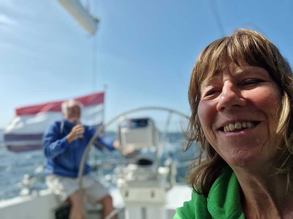 Ik ga inschepen in Medemblik bij Happy Sailing voor een driedaagse zeilcursus… Met de trein en bus arriveer ik op donderdag 25 juli in de Pekelharinghaven… Eerst een nachtje op een Bavaria 35 en dan op vrijdag starten we op de J5 Harmony Included. We hebben er zin in… 4 dames en een instructeur… en alle dames hebben een zeilende partner met veel ervaring! Maar leren doe je het best met een buitenstaander… en zo is het.. We gaan de motor checken, leren manoeuvreren op de motor achteruit de haven uit, gaan aanleggen aan een hoge wal, gaan het IJsselmeer op, brengen de oefening MOB Man over boord in de praktijk, hijsen en strijken de zeilen, gaan overstag, maken een gijp, we oefenen varend reven van het grootzeil, leren de box in-en uit te varen, we zeilen naar Stavoren alwaar we gezellig lunchen bij de sluis en we behandelen de theorievragen die we ’s avonds met elkaar gemaakt hebben, o.a. intekenen en opmeten van de kaartkoers… etc. het is een zeer leerzame en leuke cursus… en op de laatste dag zijn allemaal geslaagd voor CWO 1 en 2!! Trots!! Ik voel me geslaagd!! Wow!!