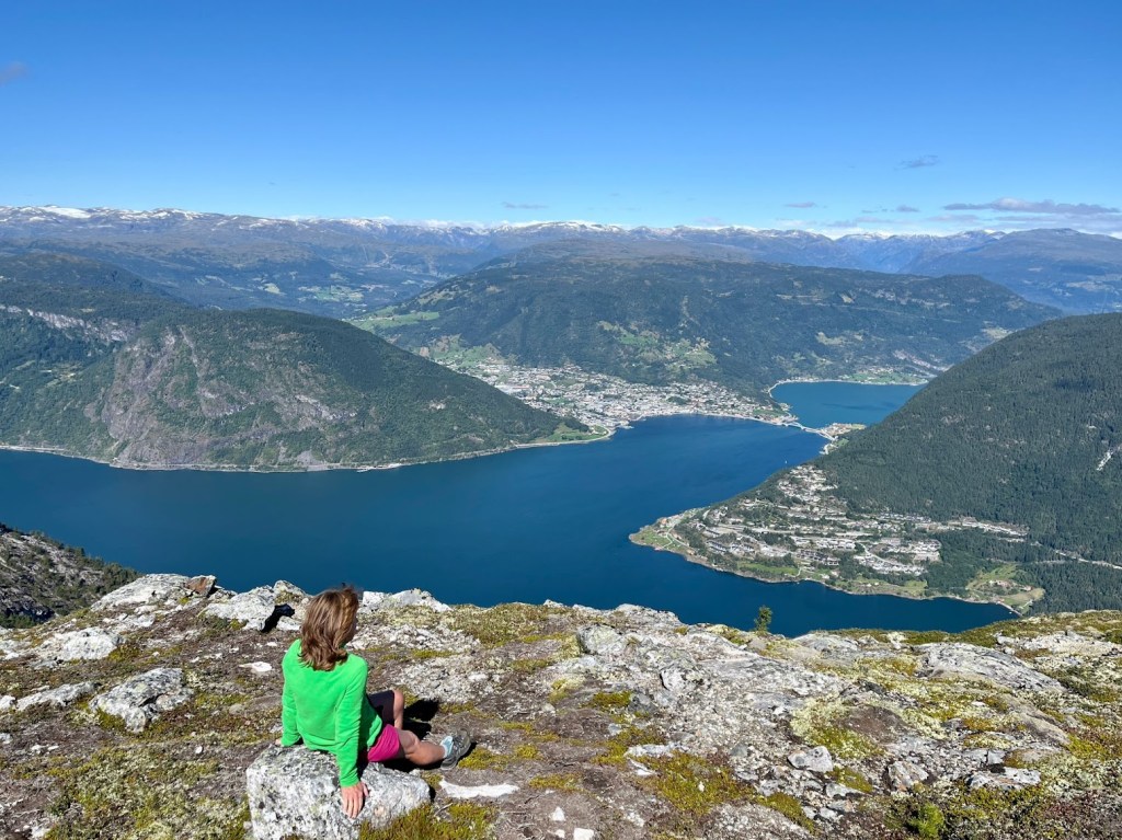 In de warmte ga ik de koffer inpakken voor Noorwegen, normaliter is het andersom, van de kou de warmte in… En dan is het zover… met de trein vanaf Mönchen-Gladbach, via Hamburg, naar Ahrus… Alles 1e klas en dat is heerlijk relaxed… In Ahrus Hotel Atlantic in het centrum overnachten we op een super locatie… de volgende ochtend eerst een zonovergoten wandeling langs het Kattegat met schitterende architectuur… Wow! ’s Middags opnieuw treinen naar Hirtshals en daar nemen we de nachtferry… Ik vind het allemaal super en bijzonder om zo de wandelweek Noorwegen te kunnen gaan starten… Deze nachtferry is luxe, we slapen met zijn drieen in een 5 persoonshut… We genieten ’s avonds van een o.o% cocktail met live muziek en uitzicht op prachtig water… De derde reisdag meren we rond de middag aan in Bergen, waar de andere wandelaars zich bij ons zullen voegen…Eerst nog een kleine wandeling in Bergen en dan vertrekt de Ferry naar Sogndal, via een schitterende tocht door de Fjorden… ’s avonds brengt de taxi ons naar Feriepark Vesterland, waar we deze week zullen verblijven in een cabin…. We wandelen deze week drie maal naar een top, klimmen en dalen in een prachtige omgeving, leuk gezelschap, heerlijk eten, leuk slaapmaatje… en we fietsen met 50 km een berg af… we maken een korte Fjordcruise en wandelen dan terug naar ons huisje… we zwemmen 4x in het luxe zwembad met dito luxe douches… we gaan een keer in Sogndal bij een pizzeria eten… kortom een fantastische wandelweek met vitawalking.nl … De laatste avond sluiten we af met een BBQ op onze veranda en nemen de vitawalking pin in ontvangst en daarnaast neem ik ook de Noorse wandelpin via Judith van Joyce in ontvangst van wandelpin.nl…