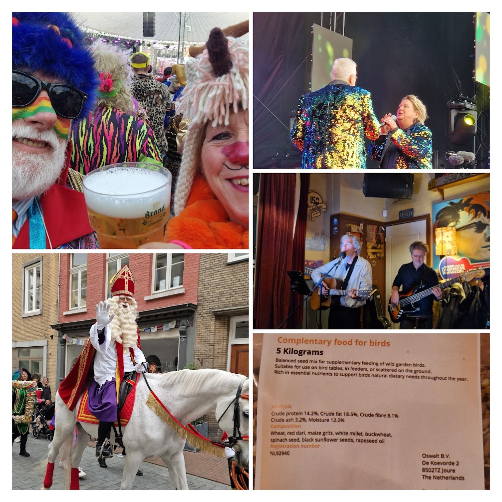 De housewarming vindt plaats met zo’n kleine elf plus vier personen. De nieuwe bewoonster toont haar blijdschap, over de hulp bij de geslaagde verhuizing, met de nodige drankjes en hapjes. Tot in de late uurtjes blijft het licht bij haar branden. Het hoogtepunt van onze zaterdag is: “Tribute – Battle of the Bands”. Dus: lekker hangen voor de tv. De Sint heeft ter nauwer nood, m.b.v. een zeehond, Texel bereikt en is op weggegaan richting Roermond. Waar hij zondag het enthousiaste publiek op de overvolle Roerkade in extase brengt. Wij zakken tegen de avond af richting “Resistent”, om te genieten van een fantastisch concert van Ton Custers: onze ”local music hero”. Wij schuiven zo van de late zondag…. richting de vroege maandag uurtjes.