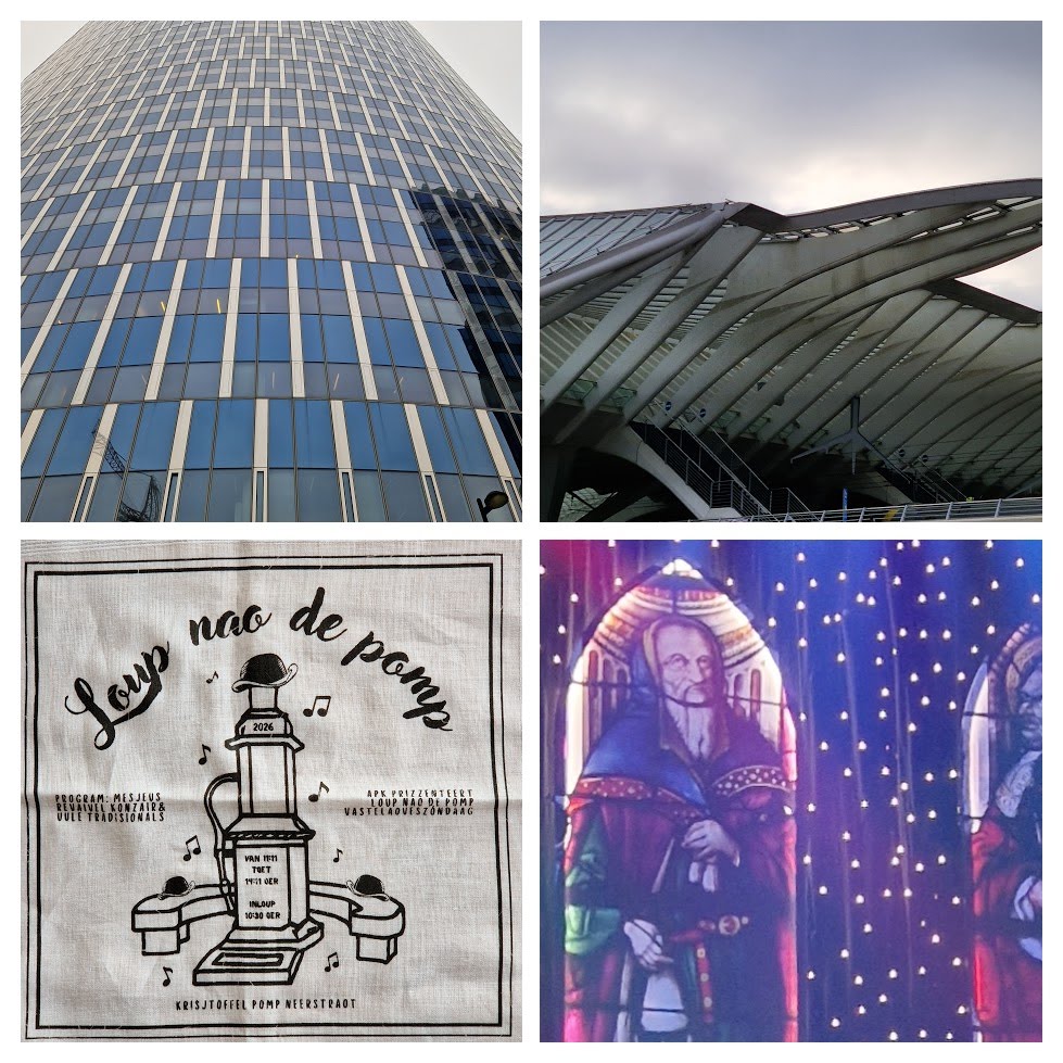 Woensdag op stap met de trein; een dagje Liège. Wederom onder de indruk van het geweldige station “Luik-Guillemins”. Santiago Calatrava heeft hier een prachtig object gecreëerd. We amuseren ons met een flinke wandeling, stappen door de stad en langs “La Meuse”, de kerstmarkt en enkele “heilige huisjes”, alwaar we kennismaken met La Chouffe en Tripick. De “overstaptijd” in Maastricht benutten we zinvol door een bezoek te brengen aan “Zondag”. Nee niet die dag, maar “gewoon het heilige huisje” in Wijck. Eenmaal thuis praten en genieten we nog enige tijd na. Donderdag “betalen we lichtelijk de rekening” voor de inspanningen van de dag ervoor.